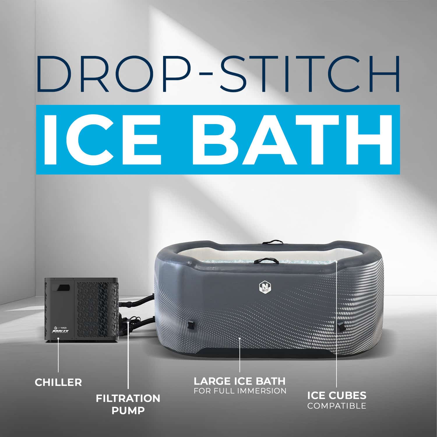 De Järvi is een Drop-Stitch zwembad ontworpen voor atleten en fitnessfanaten die ijsbaden willen nemen. Het is gemaakt van kwaliteitsmaterialen en biedt uitstekende thermische isolatie en een stabiele onderdompeling. De Järvi is eenvoudig te installeren en te onderhouden enheeft de unieke eigenschap dat het zowel geschikt is voor het gebruik van ijsblokjes om het water te koelen, als voor het aansluiten van een koelmachine dankzij de aansluitkit D32 mm.